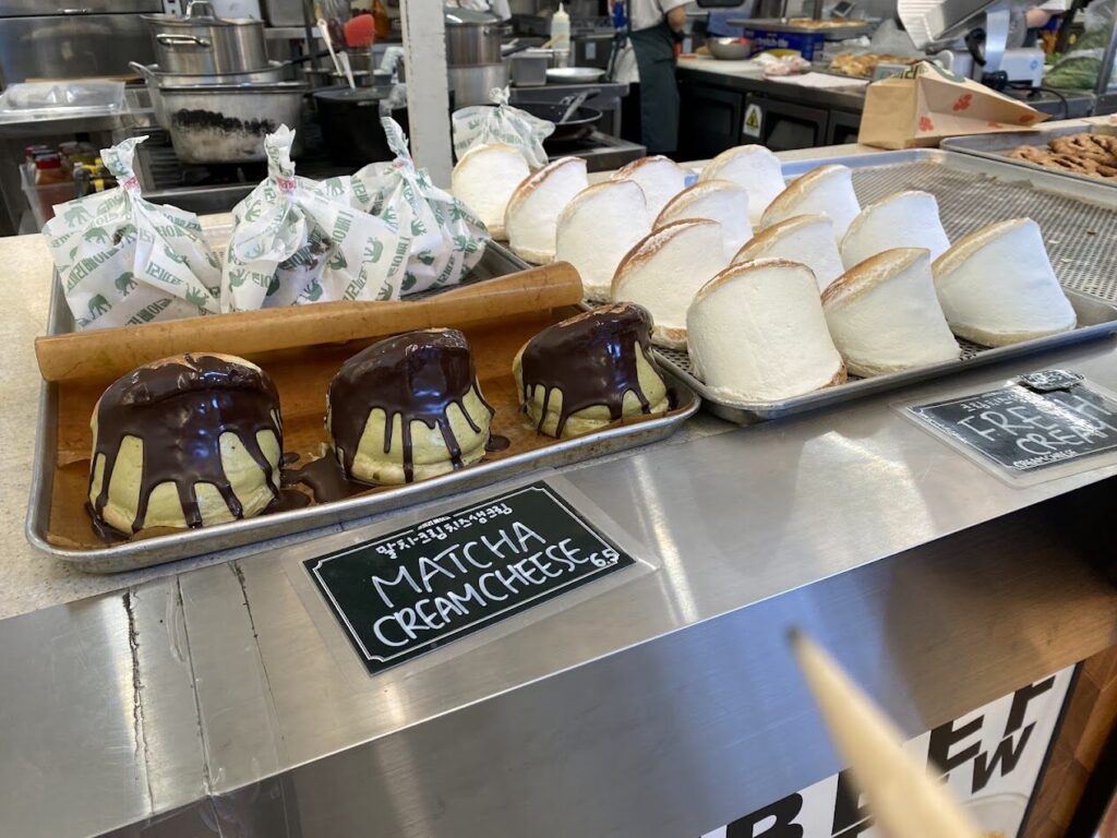 子供が大好きなSnowManさんのしょっぴーさん、ラウールさん、めめさんが訪れたベーグル屋「KOKKILI BAGEL」へ。子供から影響を受け私たち夫婦もSnowManさんが好きで全員の名前が言えるようになりました!母はピンク髪のさっくんさんだけ知っていました!We then visited KOKKILI BAGEL, a bagel shop that members of Snow Man—Shoppy, Raul, and Meme—had visited.Because of our kids, my husband and I also became fans, and now we can name all the members!My mother only knew Sakuma because of his pink hair 😊