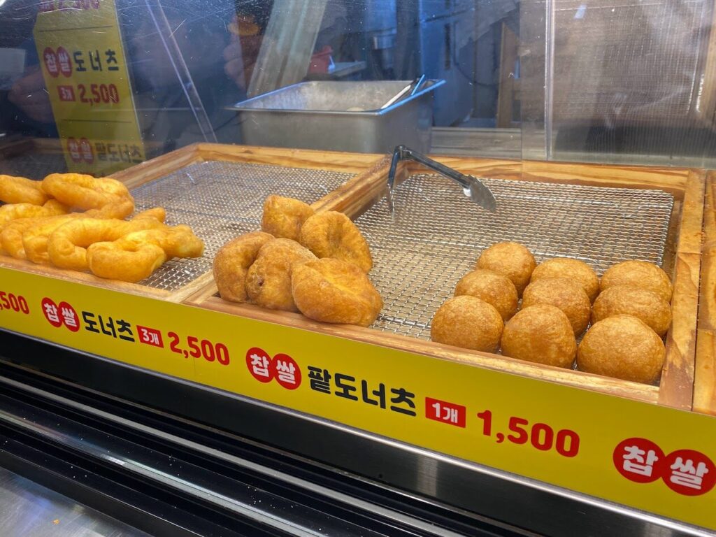 We bought both plain donuts and ones filled with sweet red bean paste. Both were chewy and delicious, but I especially loved the red bean one!On the way back, we found a shop selling tteokbokki, so of course we had to get some. We ate it back at the hotel—it was spicy and delicious!