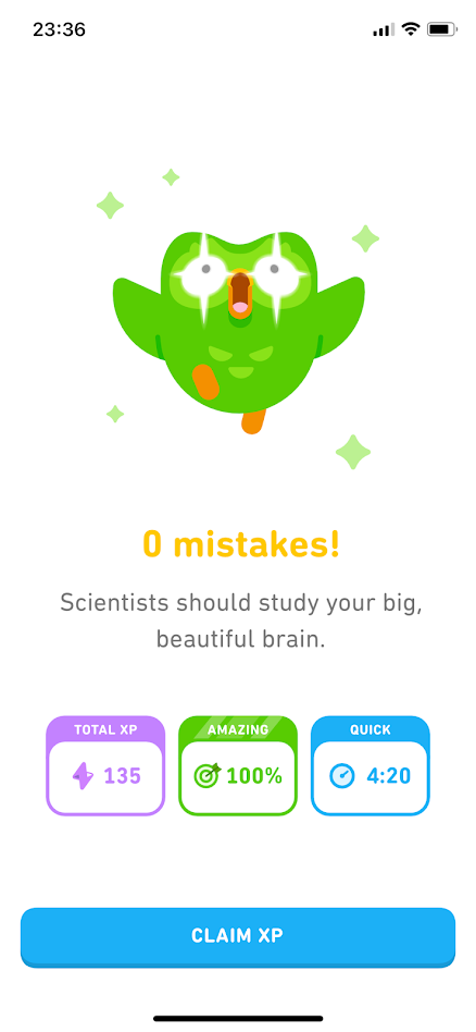I didn’t make any mistakes in today’s lesson — it was perfect. Duo is happy too (lol).
