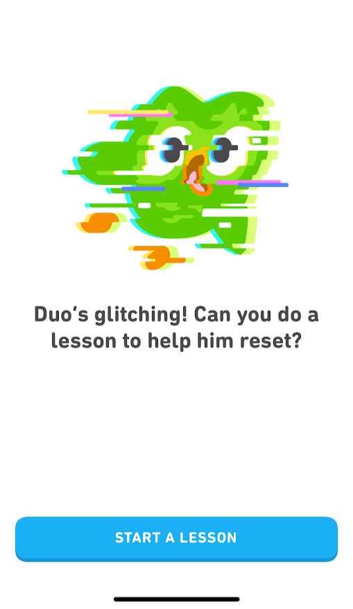Duo was glitching.Sorry for leaving the app unattended for so long.I wasn’t familiar with the word “glitching,” but when I looked it up, I found out it’s a casual expression that native speakers often use.Good to know!
